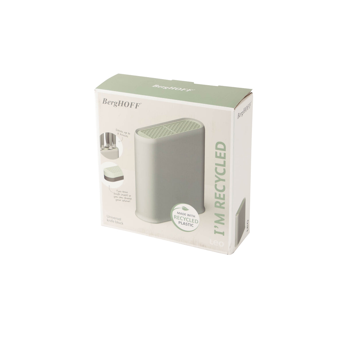Oavsett om du har ett klassiskt, neutralt eller modernt kök passar detta universella knivblock in i alla miljöer tack vare den tvåfärgade knivinsatsen. Du väljer själv: håll stilen stilren med en grå detalj eller vänd insatsen för en trendig salviaton. Förutom salviafärgen kan du ge köket ännu mer grönt tack vare den återvunna plasten som har använts till knivblocket. Den avtagbara insatsen är enkel att rengöra och erbjuder plats för upp till 8 knivar, medan blockets halkfria bas ger ett stabilt grepp på bänkskivan.