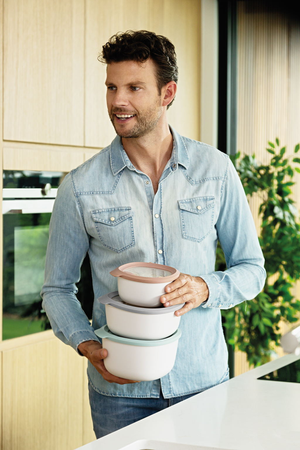 This 3-piece covered bowl set is great for serving, displaying, and storing snacks, dishes, and treats. The eco-friendly materials feel pleasant to the touch and are easy to clean, while the neutral tone enhances your food’s vivid colours. The lids feature built-in air vents that make it easy to heat up meals.