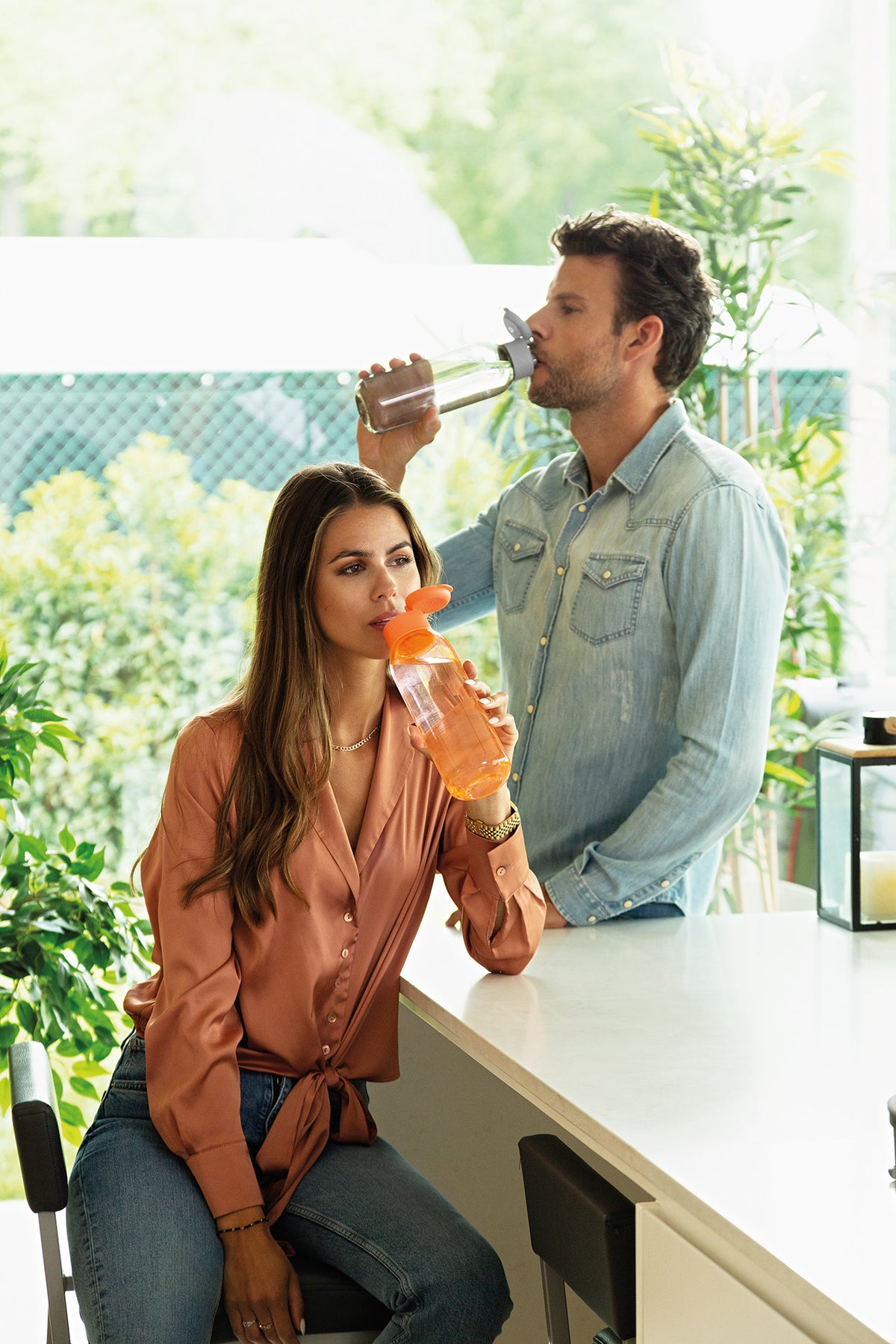 Indoor or outdoors, this BPA-free plastic water bottle is designed for all ages and all activities. The transparent Tritan body features a leak-proof seal to prevent spills on your adventures and a practical flip-top lid that’s easy to open, sip from, and close.