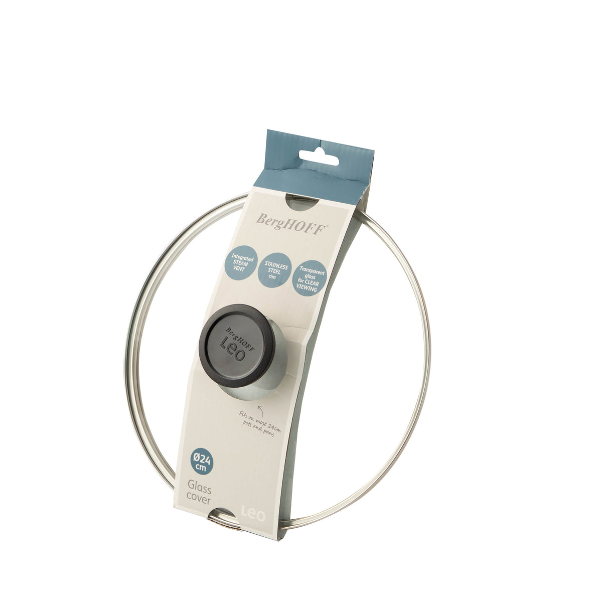 Want to speed up heating while keeping an eye on your food? That’s possible with this glass lid with an integrated venting hole. It’s equipped with a durable stainless steel rim and a phenolic resin knob so you can safely remove the lid from your casserole or pan. It even fits most 24 cm pots and pans.