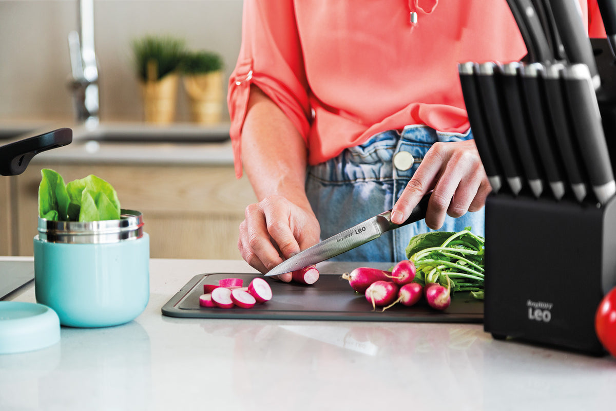Like you would expect from one of the most versatile knives you’ll ever use, this stainless steel utility knife excels at a wide variety of everyday tasks, from peeling and slicing vegetables to cutting meat or tackling a loaf of bread. The sharp blade is made from stainless steel that resists stains as well as corrosion, has a long-lasting sharpness and is easy to maintain. In other words, this utility knife is a great partner to keep around the kitchen!