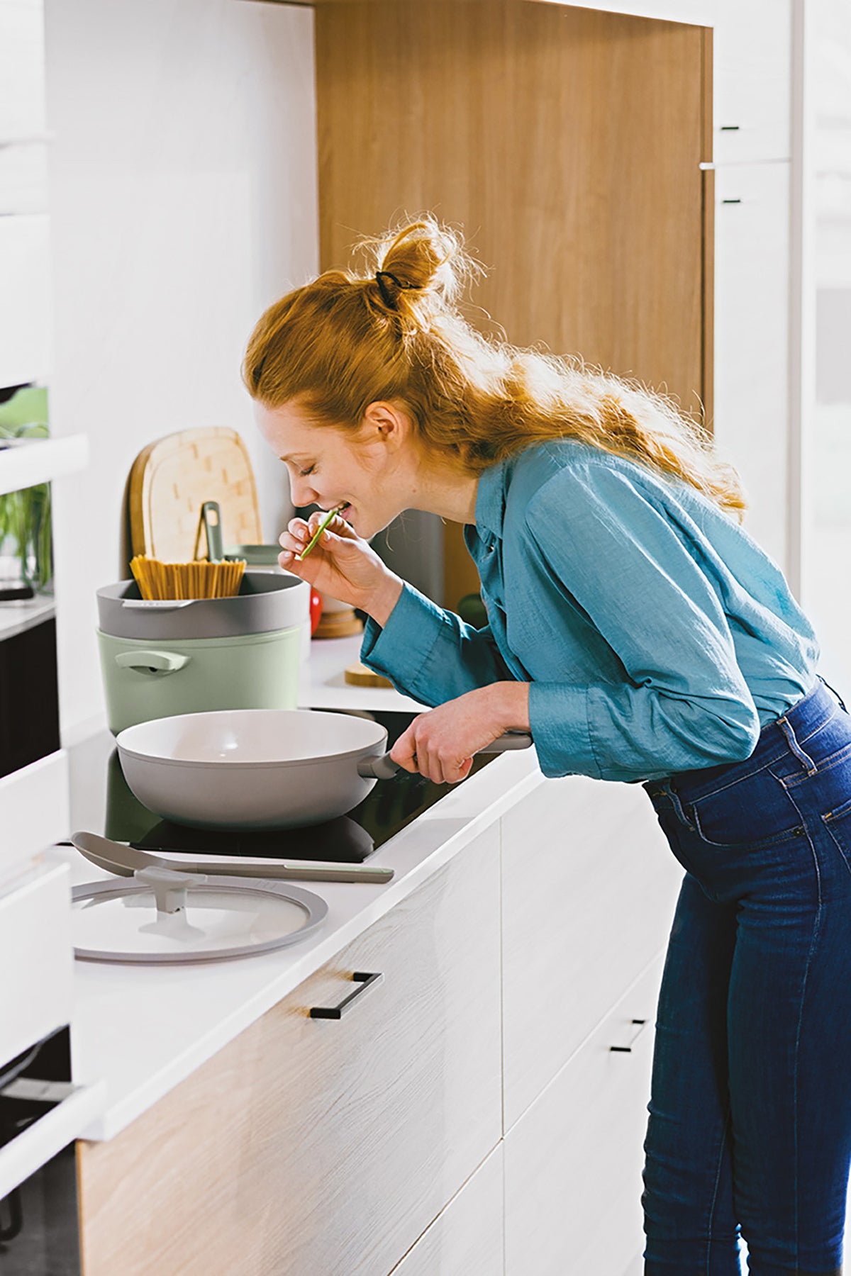 In the mood for a tasty stir-fry, a flavourful paella, or a savoury risotto? With this covered stir-fry pan you’ll create the most delicious dishes in no time. The recycled aluminium body guarantees fast, even and energy-efficient heat distribution on any stovetop, including induction. The high-quality, sustainable and healthy ceramic non-stick coating lets you cook with little to no oil and makes cleaning a breeze. Add the stay-cool handles and the clear glass lid with spoon-rest knob and integrated straining function, and you’ve got a stir-fry pan that excels in user-friendliness.