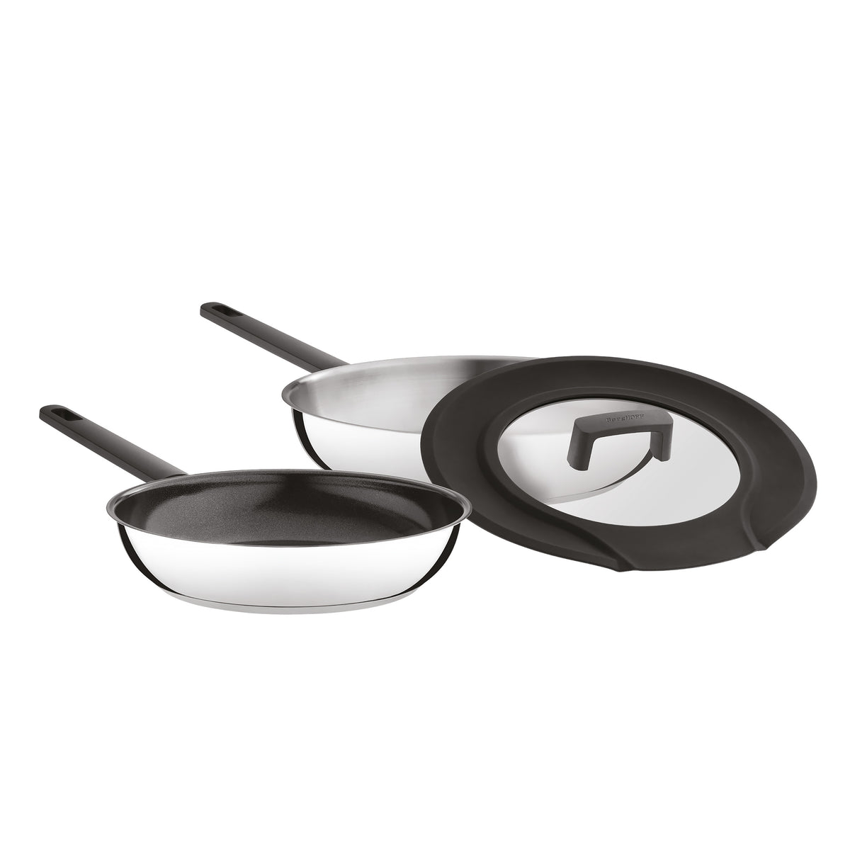 This 3-pc frying pan set includes two pans and one universal silicone-rimmed glass lid with a phenolic resin top handle for optimal usability. The 24 cm frying pan features a high-quality non-stick coating for easy food release and healthier cooking. All BergHOFF downdraft products are perfect for all cooktops, cooker hoods and downdraft exhaust systems.